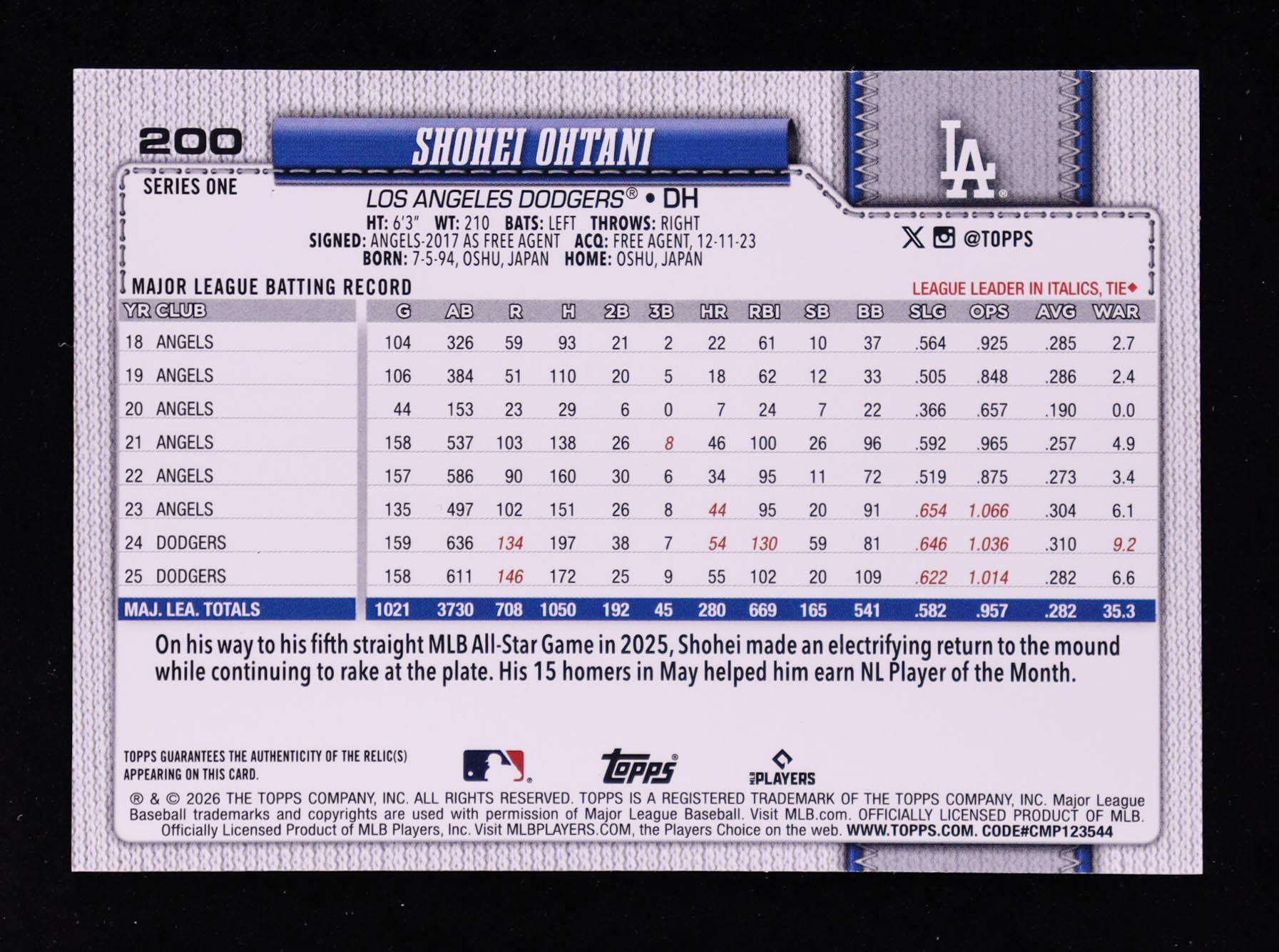 Shohei Ohtani 2026 Topps Real One Relics #200