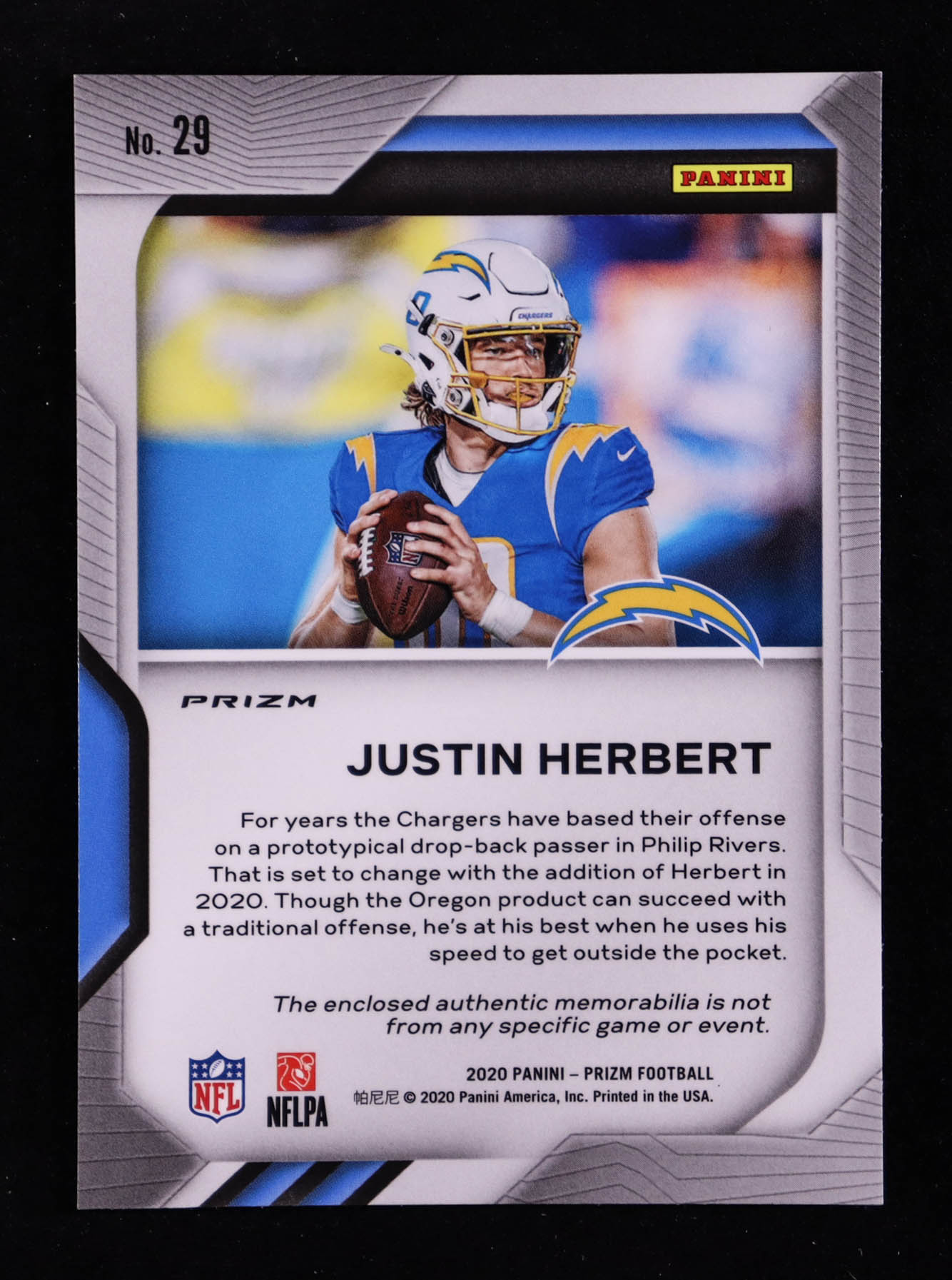 Justin Herbert 2020 Panini Prizm Premier Jerseys #29 RC