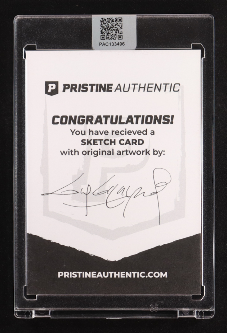 This sketch card includes original art by world-renowned illustrator, Guy Gilchrist.