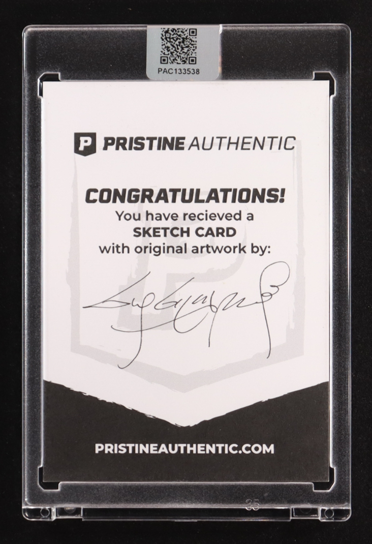 This sketch card includes original art by world-renowned illustrator, Guy Gilchrist.