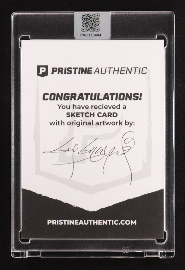 This sketch card includes original art by world-renowned illustrator, Guy Gilchrist.