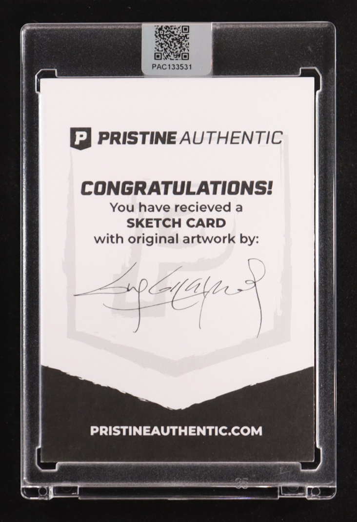 This sketch card includes original art by world-renowned illustrator, Guy Gilchrist.