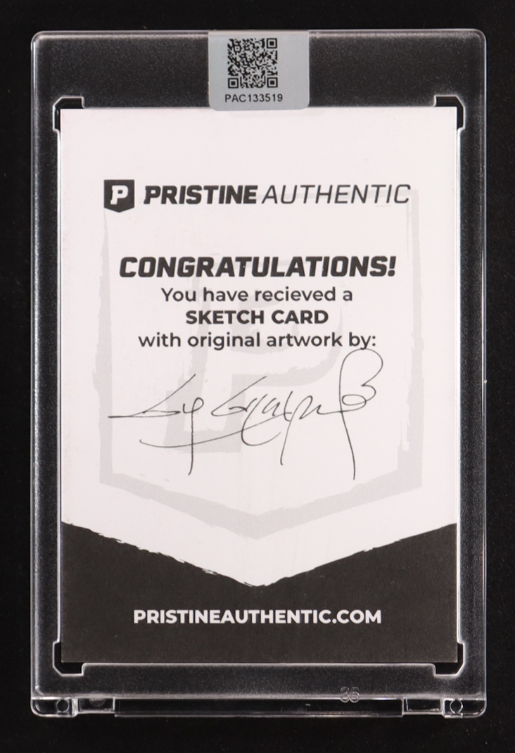 This sketch card includes original art by world-renowned illustrator, Guy Gilchrist.
