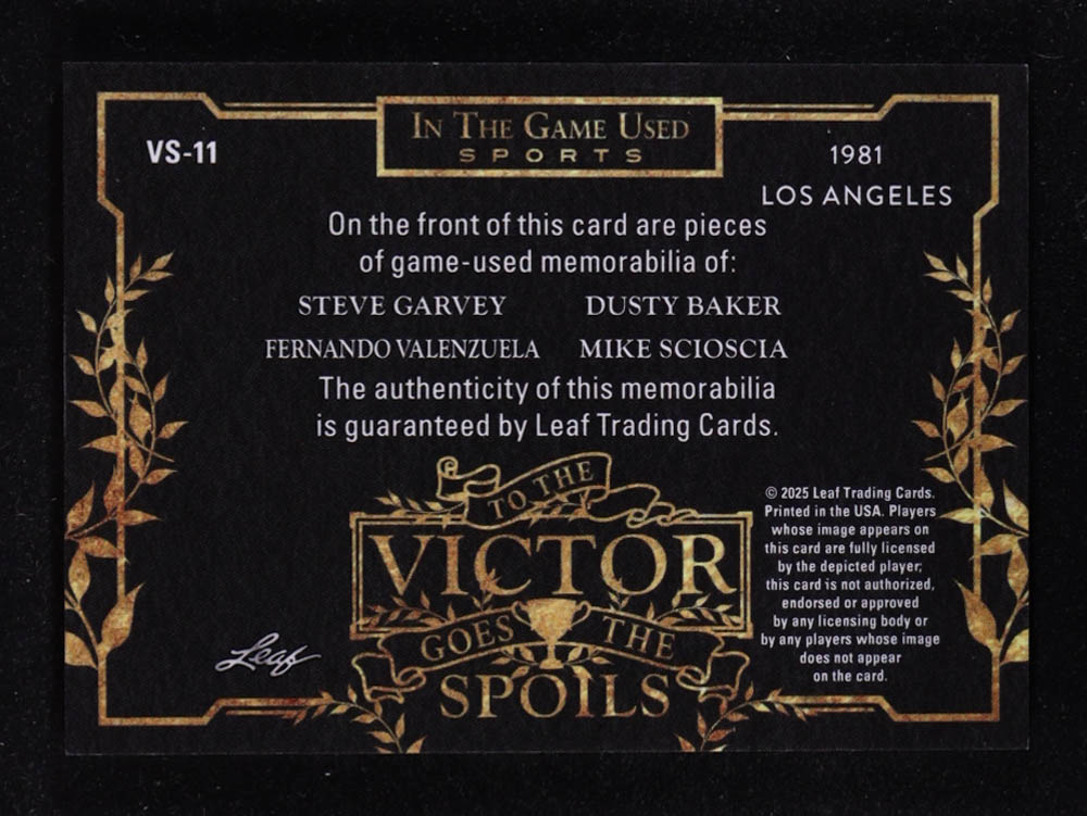 Steve Garvey / Fernando Valenzuela / Dusty Baker / Mike Scioscia 2025 Leaf ITG Used Sports TO the Victor Goes the Spoils Green #VS11 #1/2