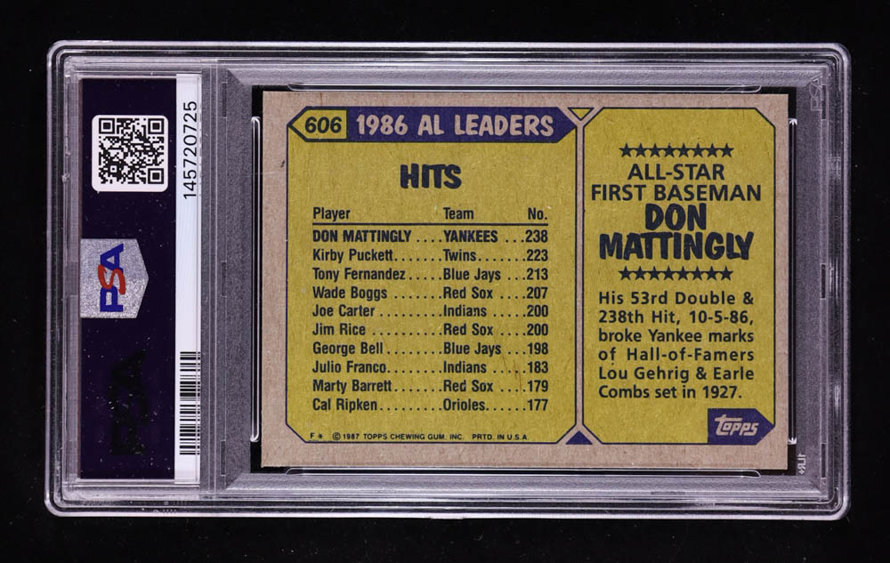 Don Mattingly 1987 Topps / Trademark On Front #606 (PSA 9)