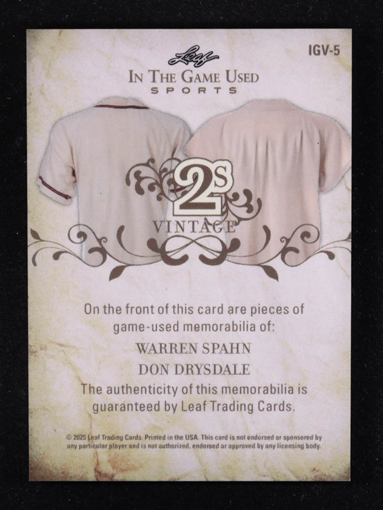 Warren Spahn / Don Drysdale 2025 Leaf ITG Used Sports Dual Vintage Silver Sparkle #IGV5 #4/8