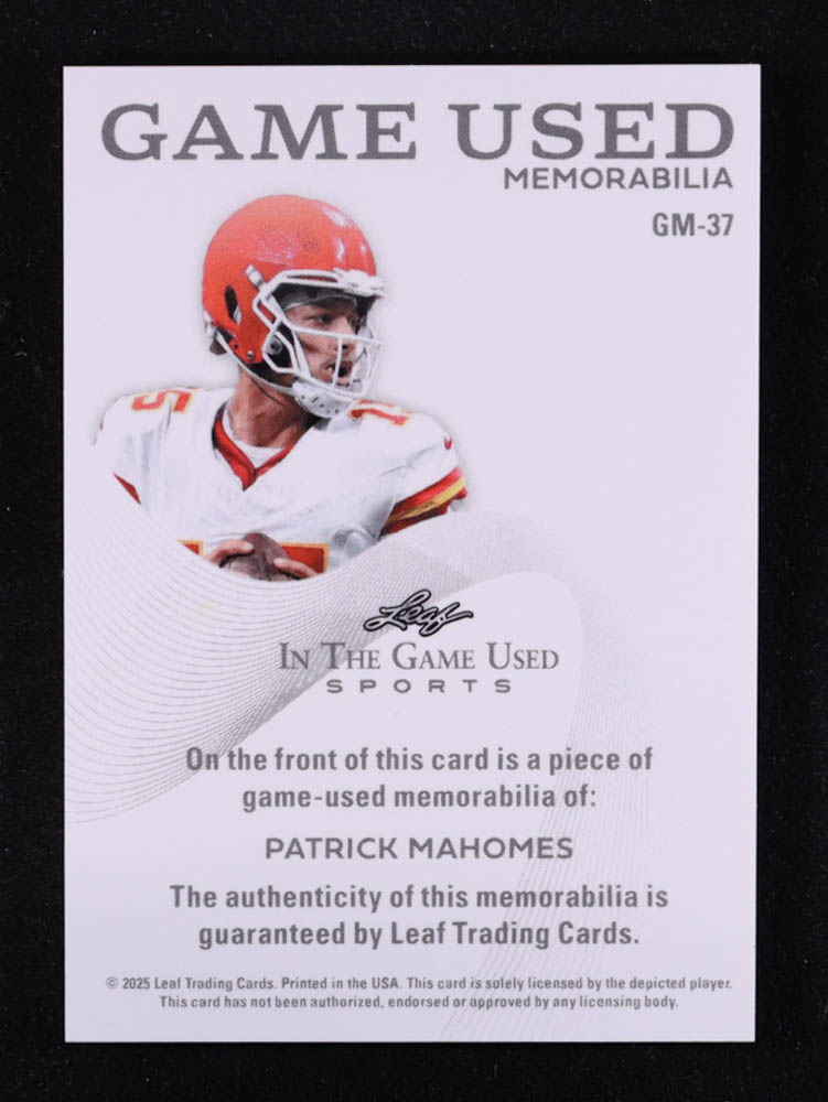 Patrick Mahomes II 2025 Leaf ITG Used Sports Game Used Memorabilia Green #GM37 #3/3