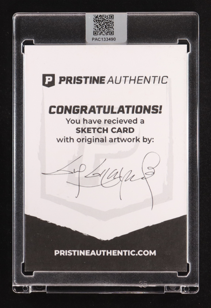 This sketch card includes original art by world-renowned illustrator, Guy Gilchrist.