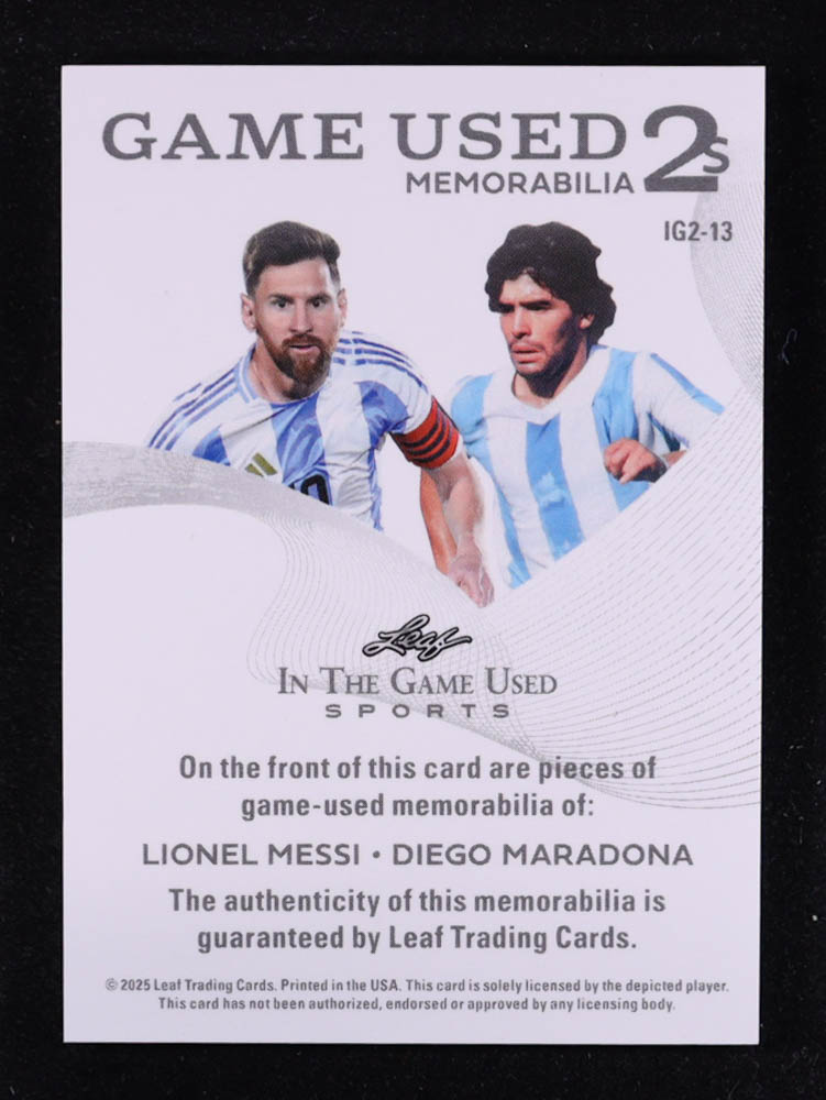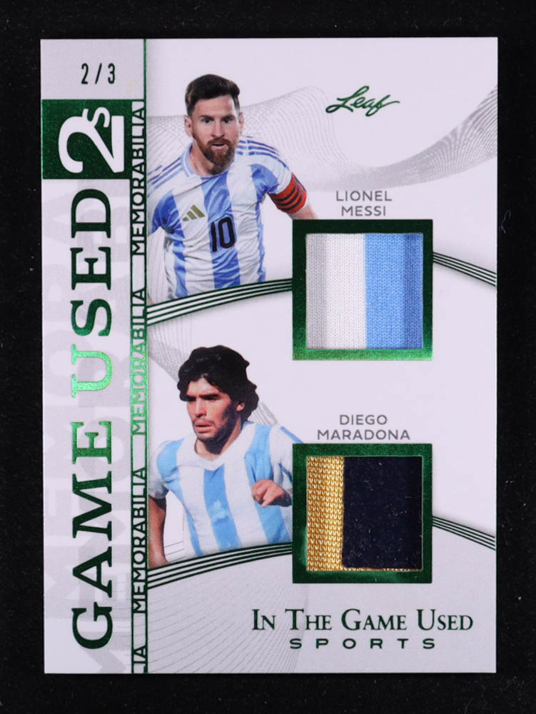 Lionel Messi / Diego Maradona 2025 Leaf ITG Used Sports Game Used Dual Memorabilia Green #IG213 #2/3