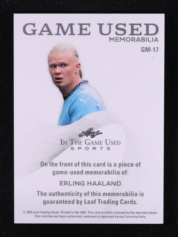 Erling Haaland 2025 Leaf ITG Used Sports Game Used Memorabilia Black #GM17 #1/3
