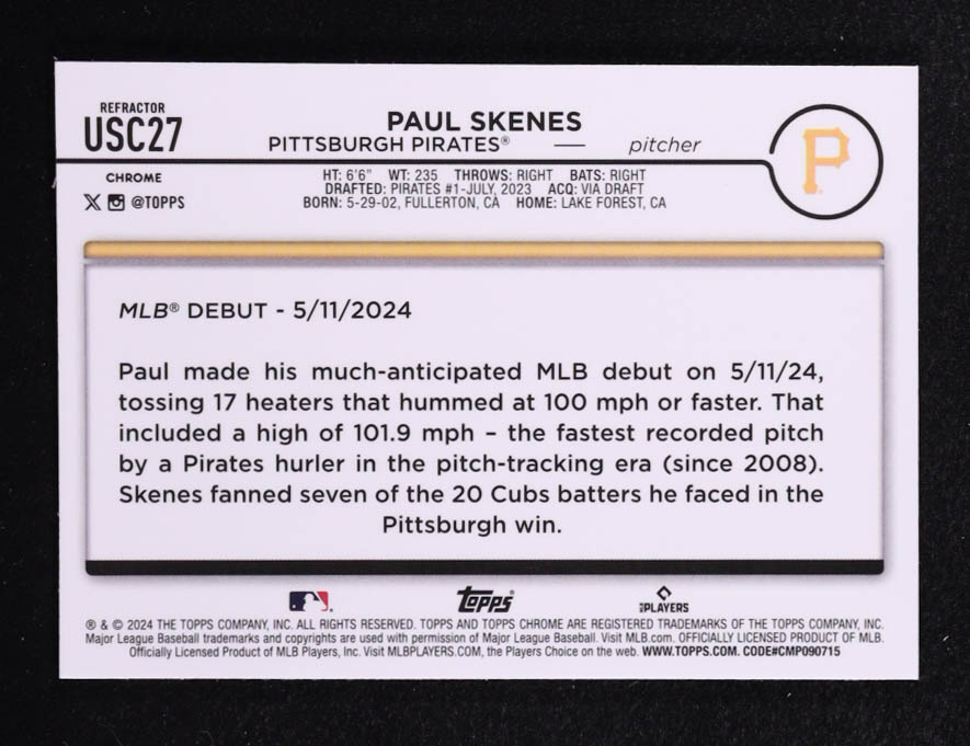 Paul Skenes 2024 Topps Chrome Update Refractors #USC27 RC