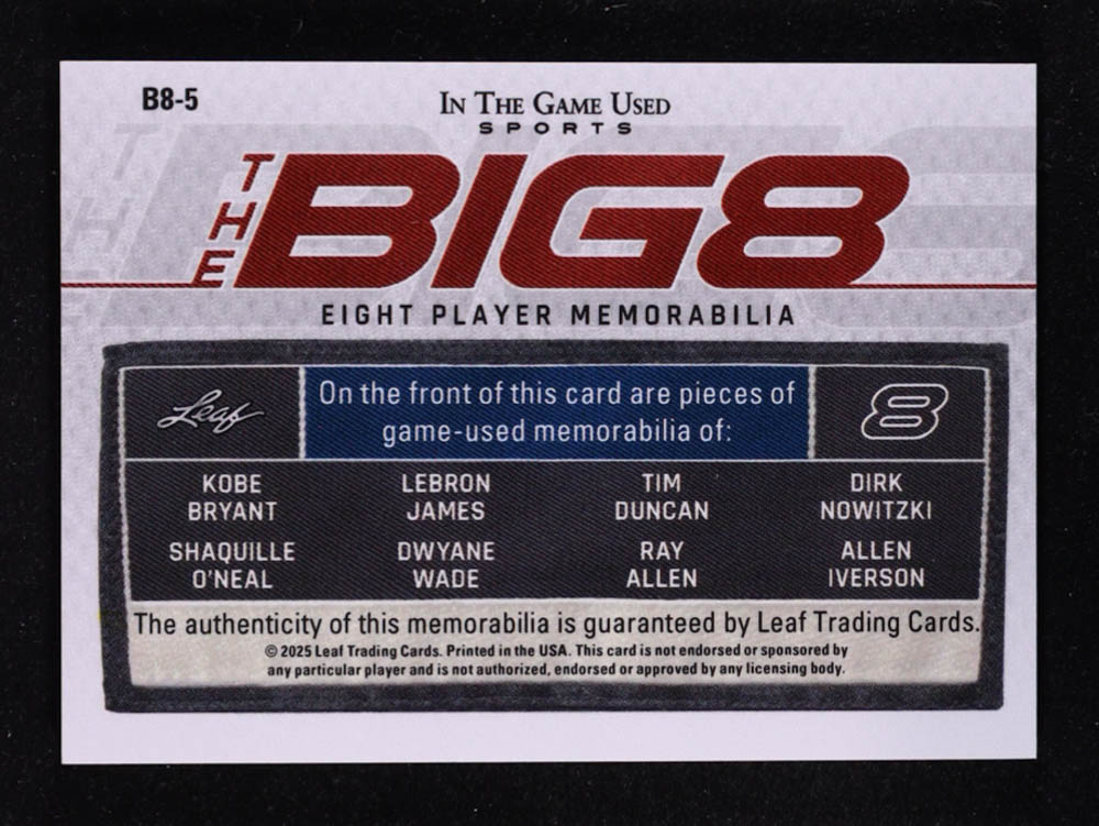 2025 Leaf ITG Used Sports Big 8 Green #B85 Kobe Bryant / LeBron James / Tim Duncan / Dirk Nowitzki / Shaquille O'Neal / Dwyane Wade / Ray Allen / Allen Iverson #1/3