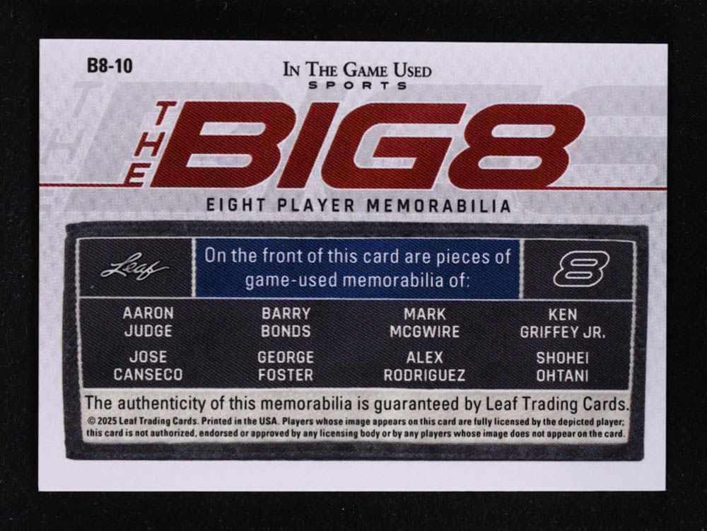 2025 Leaf ITG Used Sports Big 8 Green #B810 Aaron Judge / Barry Bonds / Mark McGwire / Ken Griffey Jr. / Jose Canseco / George Foster / Alex Rodriguez / Shohei Ohtani #2/2