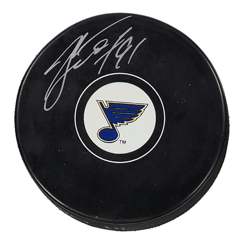 St. Louis Blues Logo hockey puck. Hand-signed by Vladimir Tarasenko.