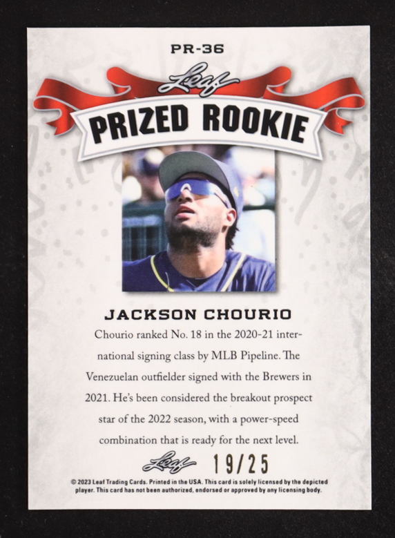 Jackson Chourio 2023 Leaf Metal Special Release Prized Rookie Prismatic Silver #PR36 #19/25 RC