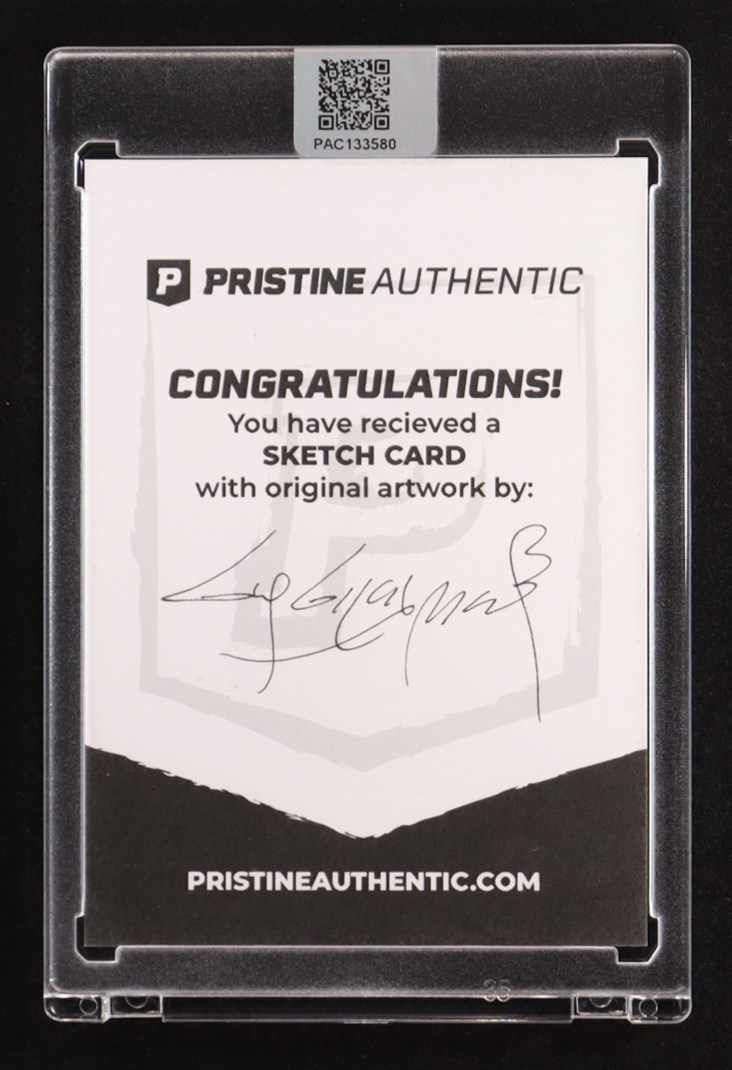 This sketch card includes original art by world-renowned illustrator, Guy Gilchrist.