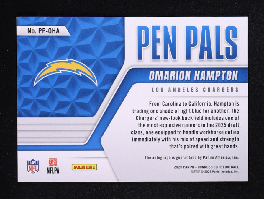 Omarion Hampton 2025 Elite Pen Pals Blue Ink #10 RC
