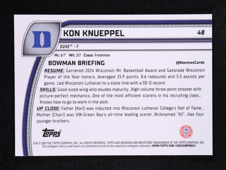Kon Knueppel 2024-25 Bowman Chrome University Green Shimmer Refractors #48 RC