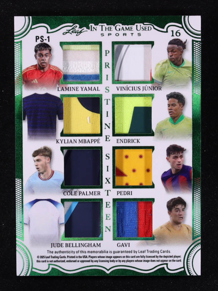 2025 Leaf ITG Used Sports Pristine 16 Green #PS1 Pele / Lionel Messi / Diego Maradona / Cristiano Ronaldo / David Beckham / Franz Beckenbauer / Neymar Jr / Wayne Rooney / Lamine Yamal / Endrick / Cole Palmer / Pedri #1/3