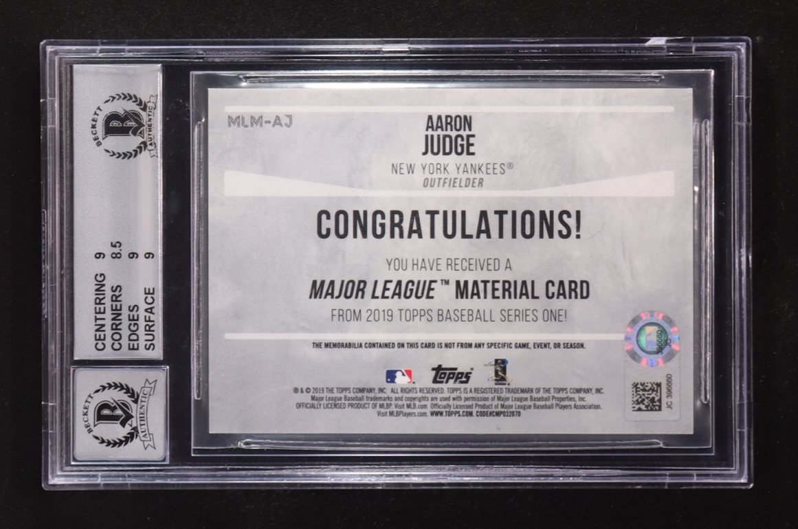 Aaron Judge Signed 2019 Topps Major League Materials Gold #MLMAJ (BGS 9 | Auto Grade 10)