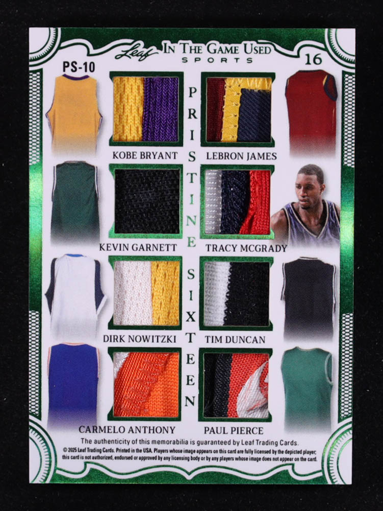 2025 Leaf ITG Used Sports Pristine 16 Green #PS10 Shaquille O'Neal / Hakeem Olajuwon / Charles Barkley / David Robinson / Karl Malone / Patrick Ewing / Grant Hill / Chris Webber / Kobe Bryant / LeBon James / Kevin Garnett / Tracy McGrady / Tim Duncan #3/3