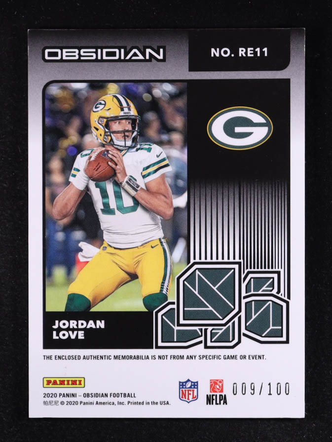 Jordan Love 2020 Panini Obsidian Rookie Eruption Materials #11 RC #009/100