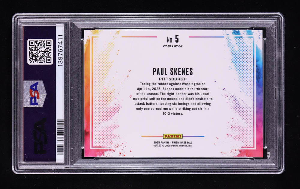 Paul Skenes 2025 Panini Prizm Color Blast #5 (PSA 9)