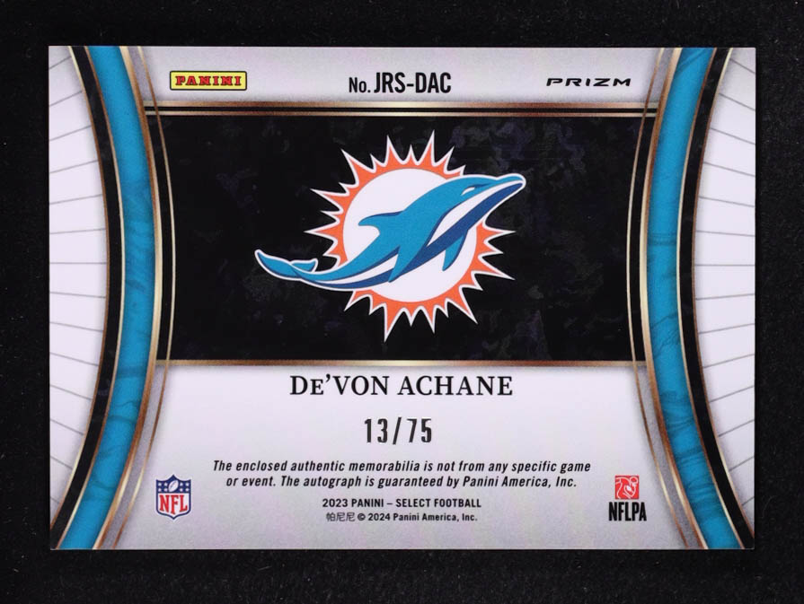 De'Von Achane 2023 Select Jumbo Rookie Signature Swatches Prizm White #7 RC #13/75