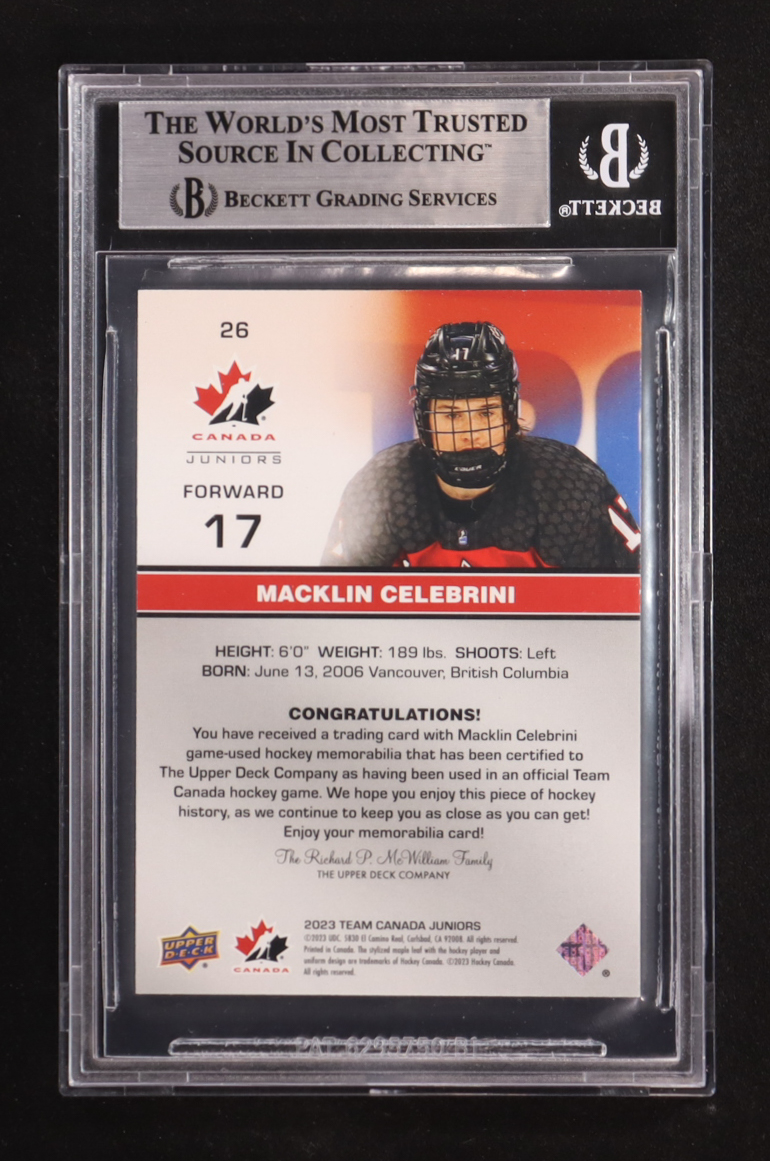 Macklin Celebrini Signed 2023-24 Upper Deck Team Canada Juniors Jersey U18 #26 (BGS)