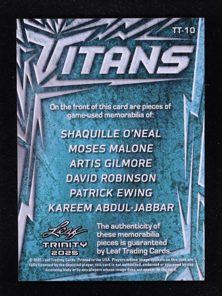 2025 Leaf Trinity Titans Purple #TT10 Shaquille O'Neal / Moses Malone / Artis Gilmore / David Robinson / Patrick Ewing / Kareem Abdul-Jabbar #4/7