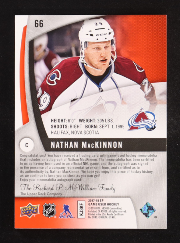 Nathan MacKinnon 2017-18 SP Game Used Red Spectrum Patch Auto #66 #3/5