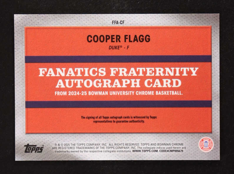 Cooper Flagg 2024-25 Bowman Chrome University Fanatics Fraternity Autographs #FFACF