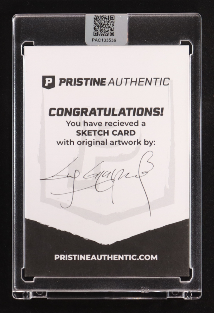 This sketch card includes original art by world-renowned illustrator, Guy Gilchrist.