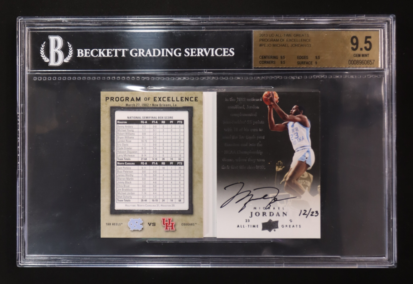 Michael Jordan 2013 Upper Deck All-Time Greats Program of Excellence #PEJO #12/23 (BGS 9.5 | Auto Grade 10)