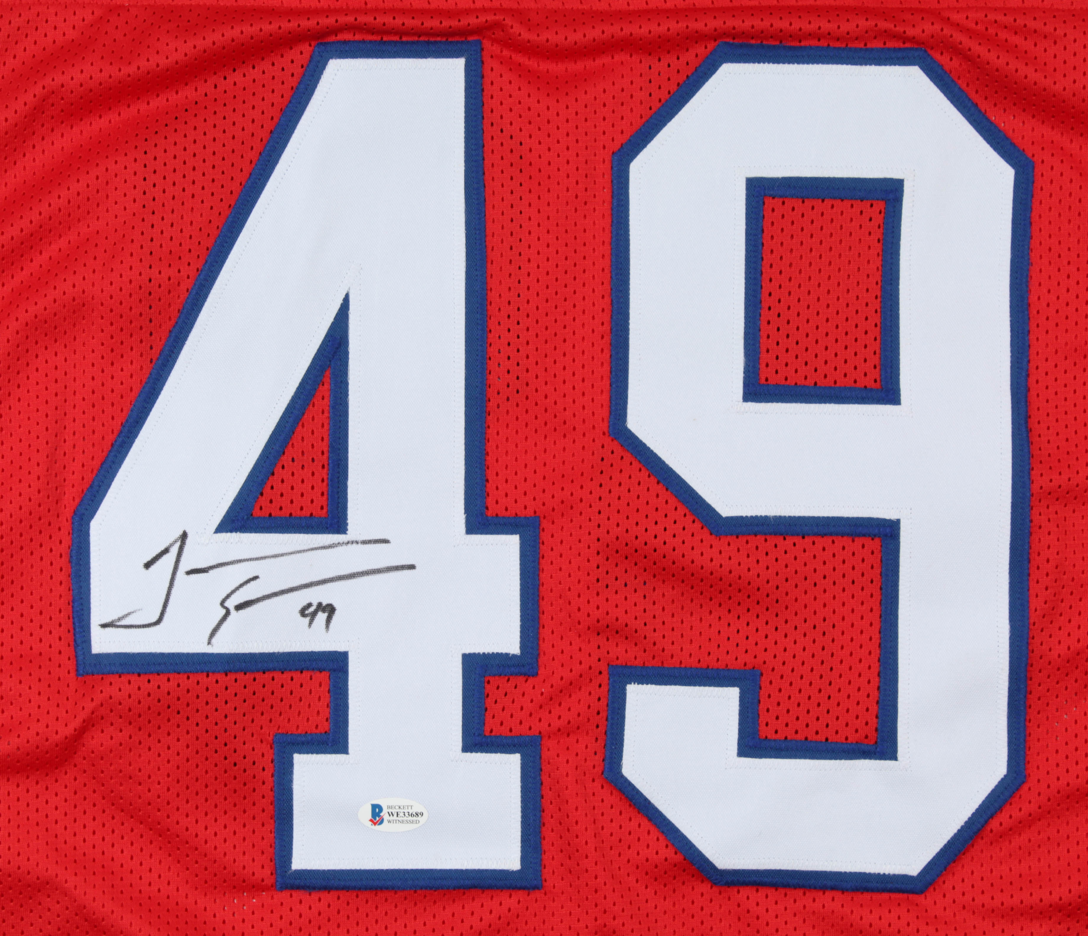 Custom jersey. Everything sewn on, size XL. Hand-signed by Tremaine Edmunds.
