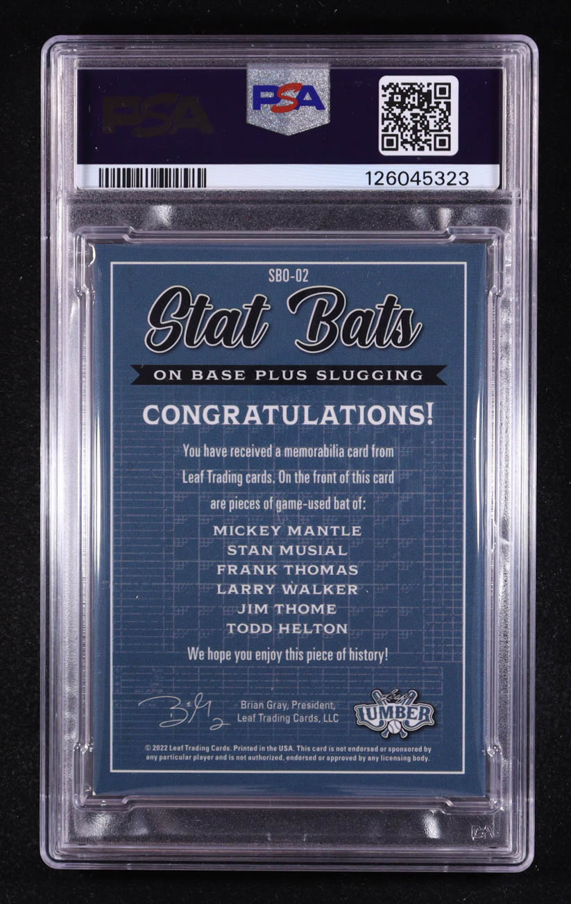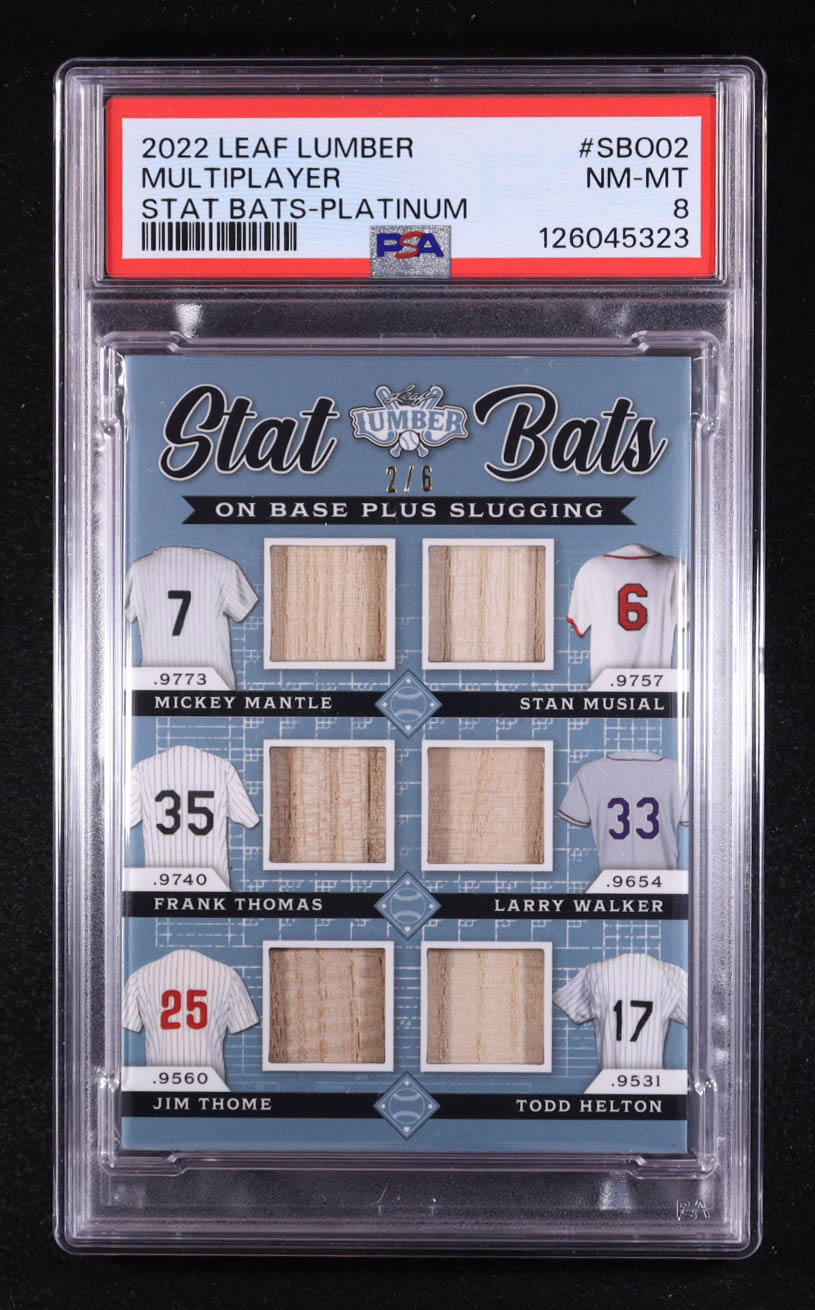 2022 Leaf Lumber Stat Bats On Base + Slugging Platinum #SBO02 #2/6 Mickey Mantle / Stan Musial / Frank Thomas / Larry Walker / Jim Thome / Todd Helton (PSA 8)