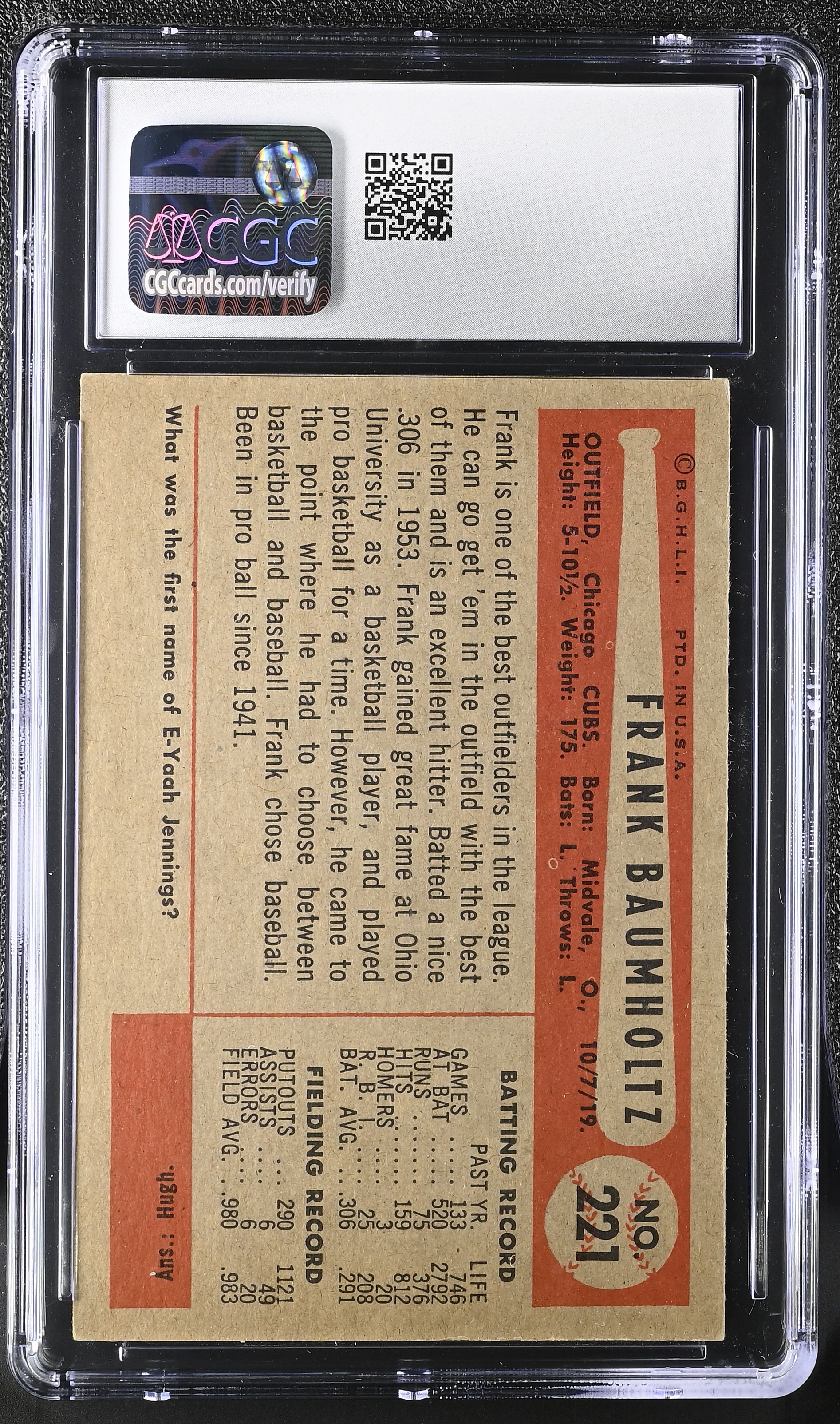 Frank Baumholtz 1954 Bowman #221 (CGC 6)