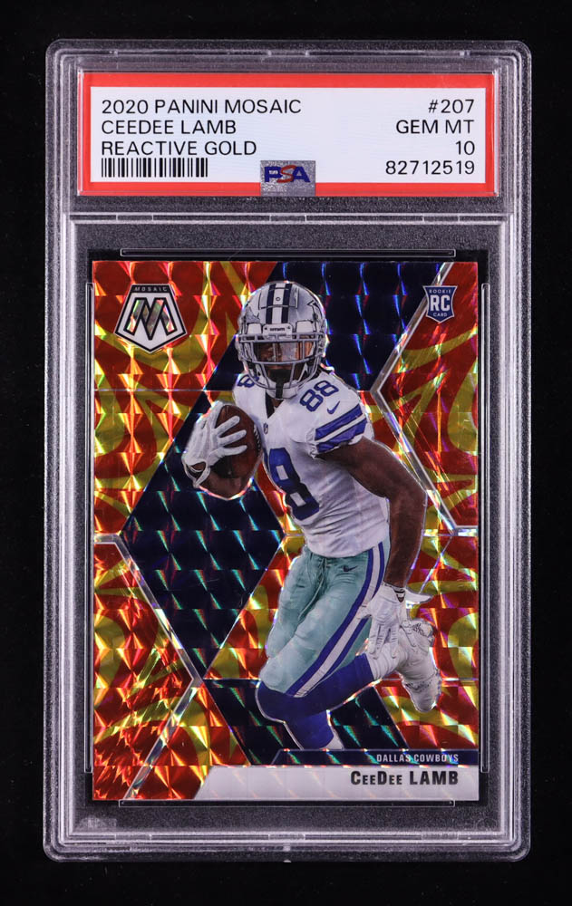 CeeDee Lamb 2020 Panini Mosaic Mosaic Reactive Gold #207 RC (PSA 10)