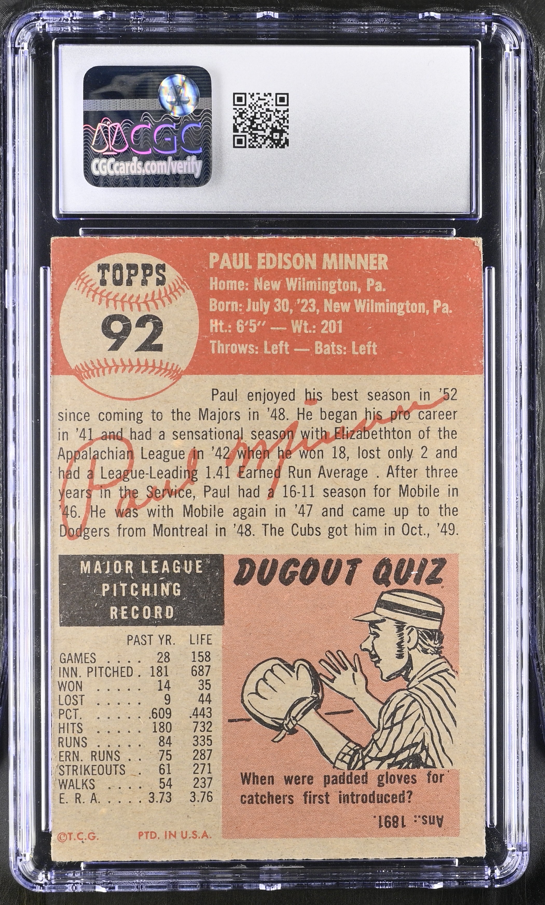 Paul Minner 1953 Topps #92 (CGC 4.5)
