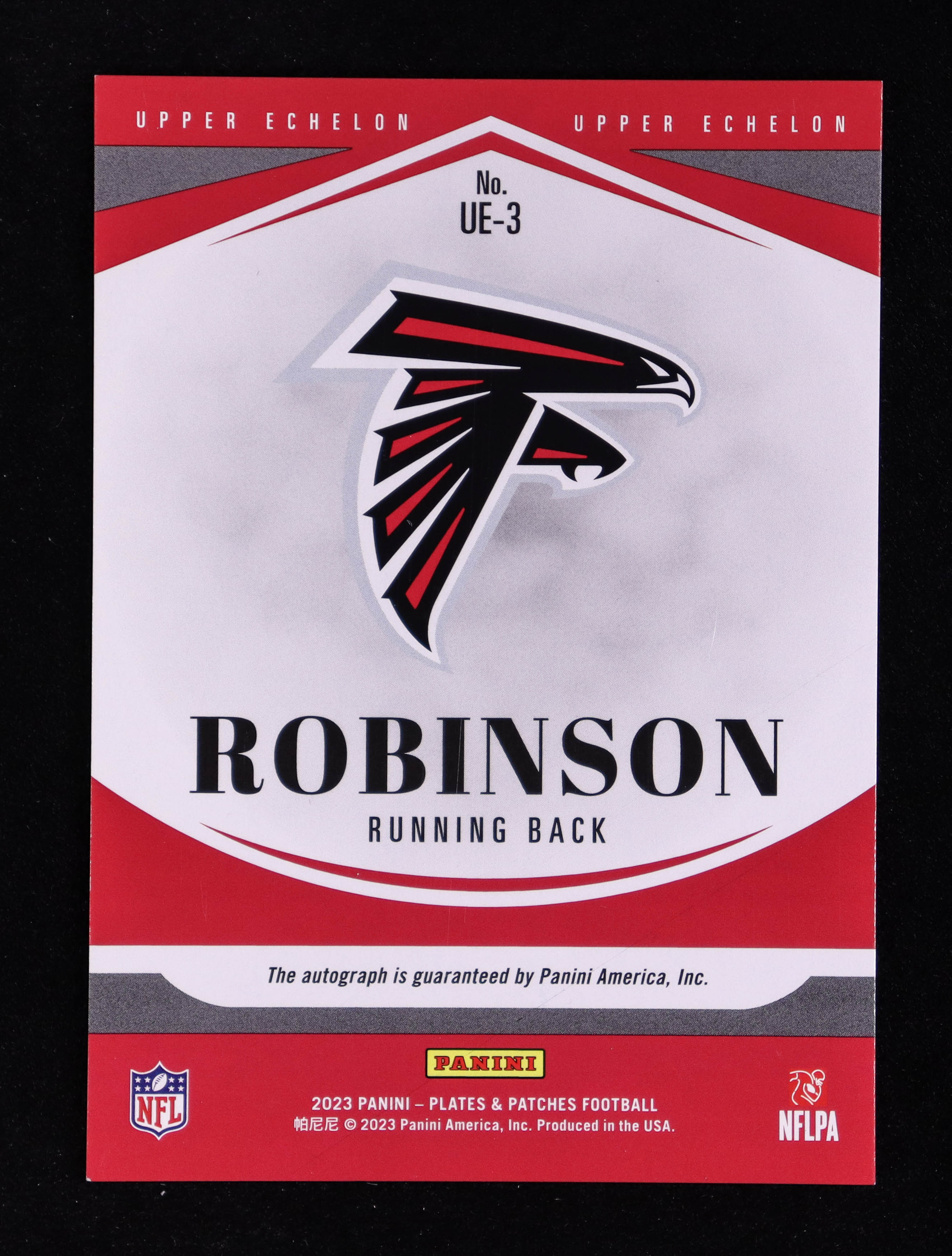Bijan Robinson 2023 Panini Plates and Patches Rookie Upper Echelon Autographs #3 #129/149 RC