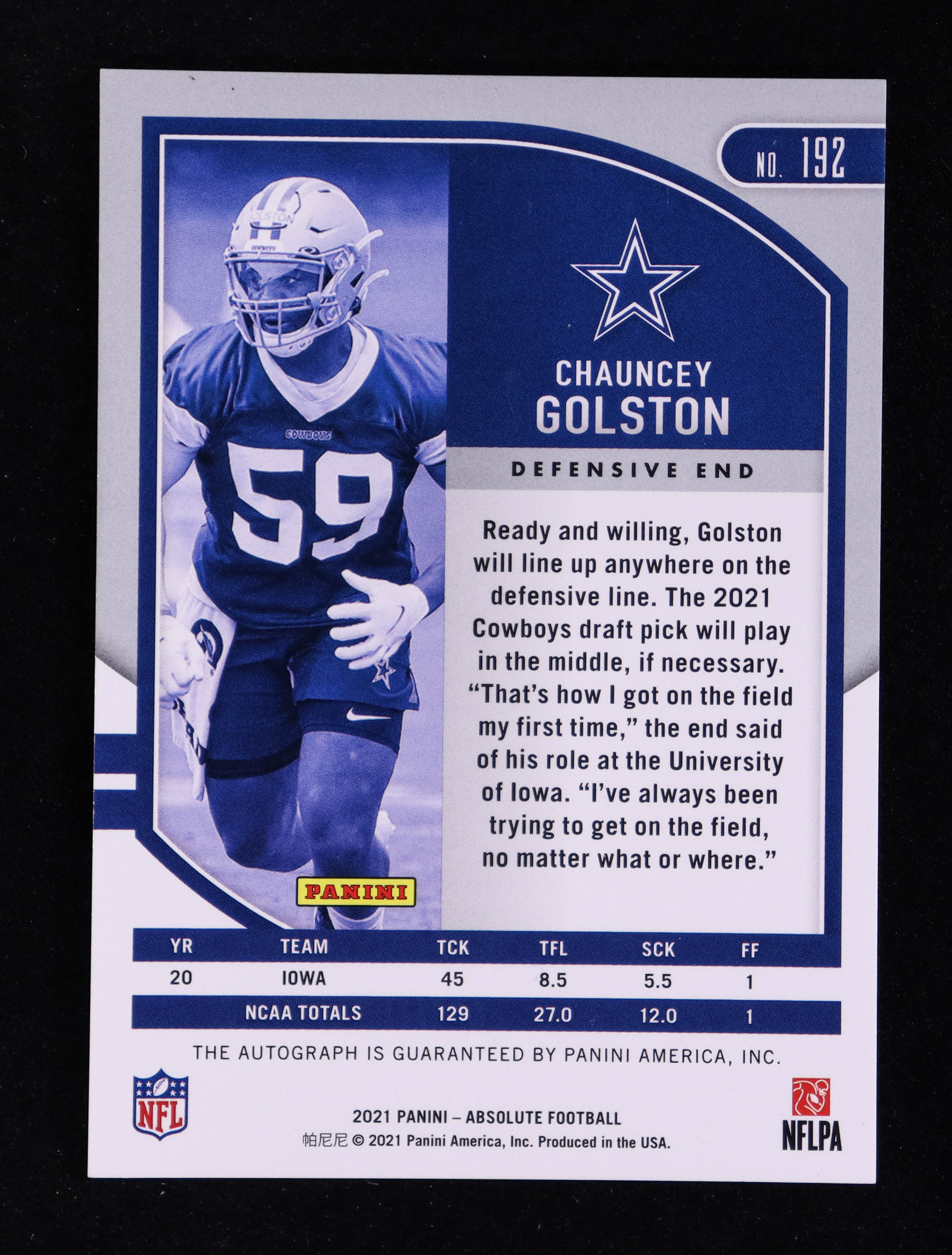 Chauncey Golston 2021 Absolute Signature Rookies Spectrum Red #192 #066/100 RC