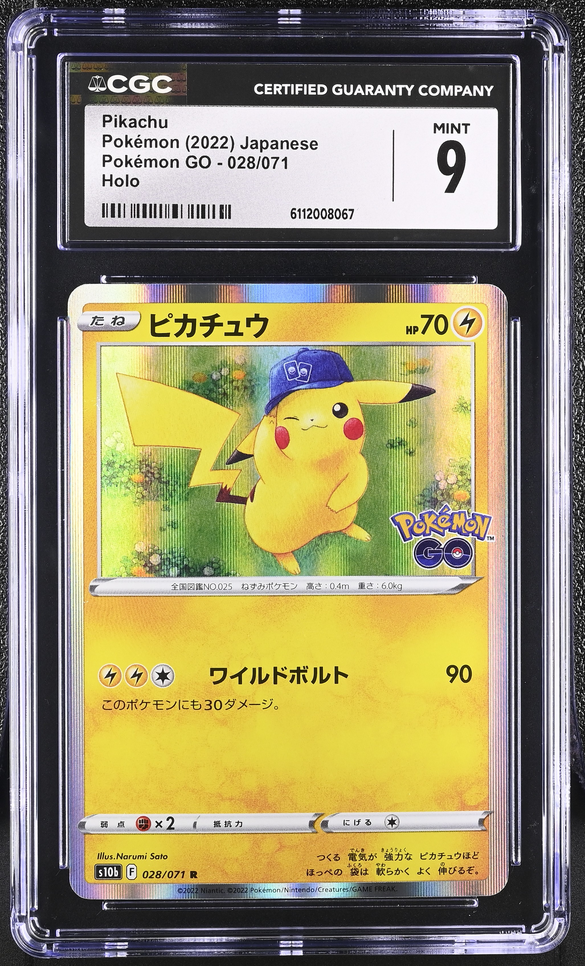 Pikachu 2022 Pokemon Card Game Sword & Shield Pokemon GO Enhanced Expansion Japanese #028 Holo (CGC 9)