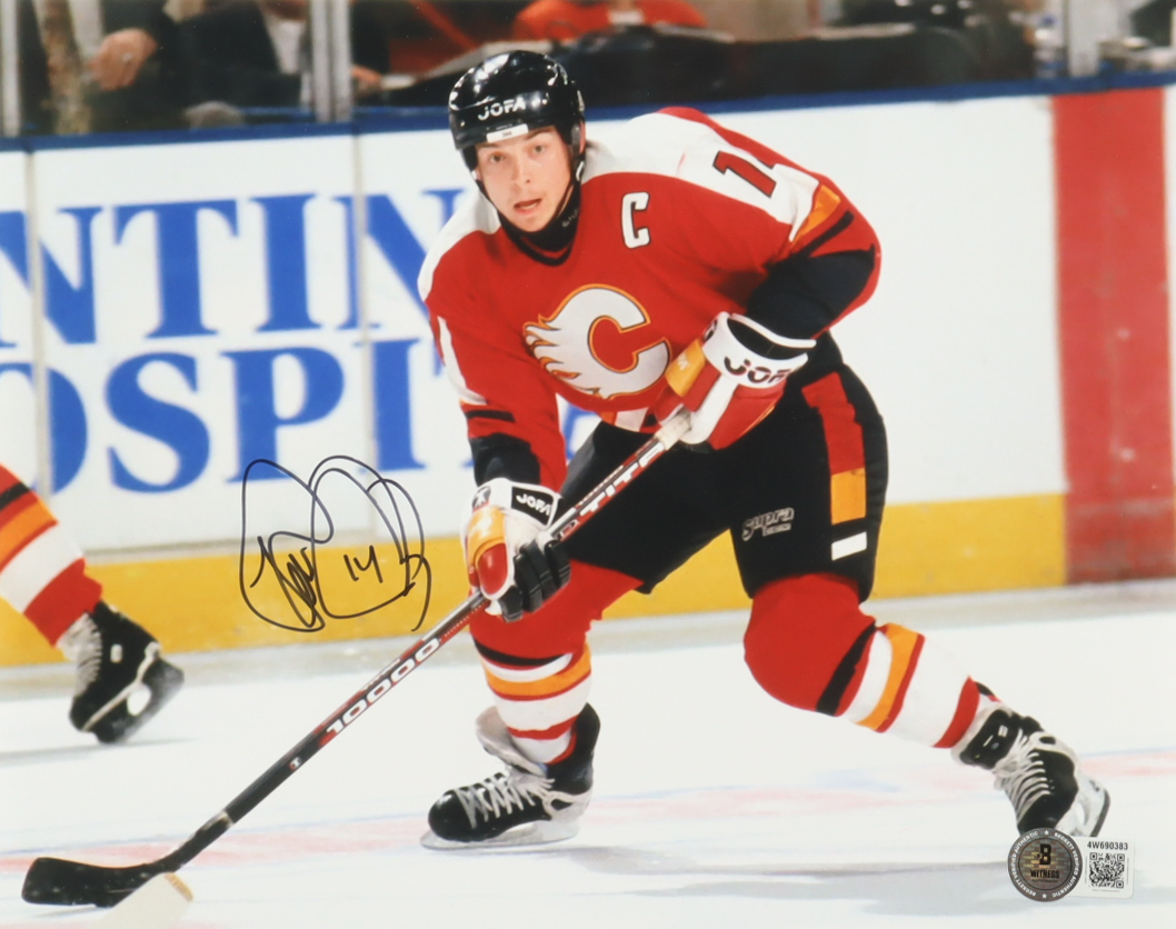 Theo Fleury Signed Flames 8x10 Photo (Beckett)