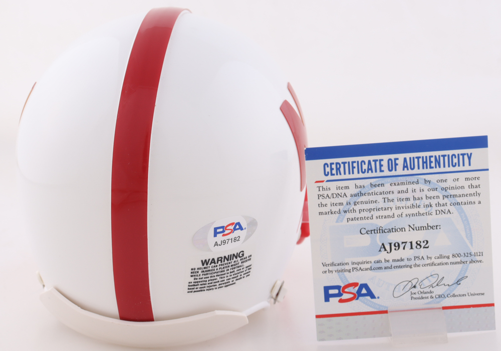 Riddell Nebraska Cornhuskers mini helmet. Hand-signed and inscribed by Tom Osborne.