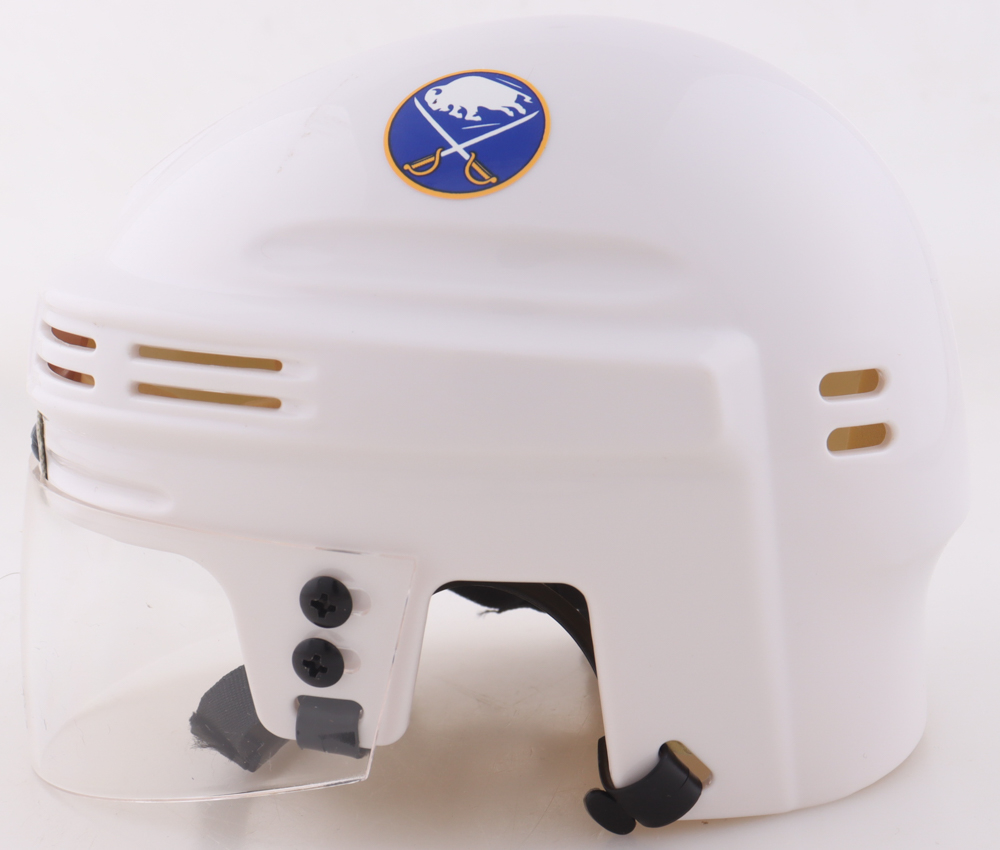 Buffalo Sabres mini helmet has been hand-signed and inscribed by Pierre Turgeon (Buffalo Sabres, HOF).