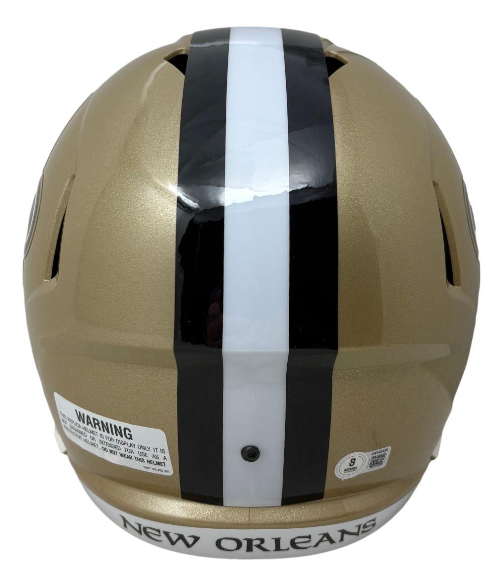 Riddell New Orleans Saints full-size speed replica helmet has been hand-signed and inscribed by Drew Brees (HOF).