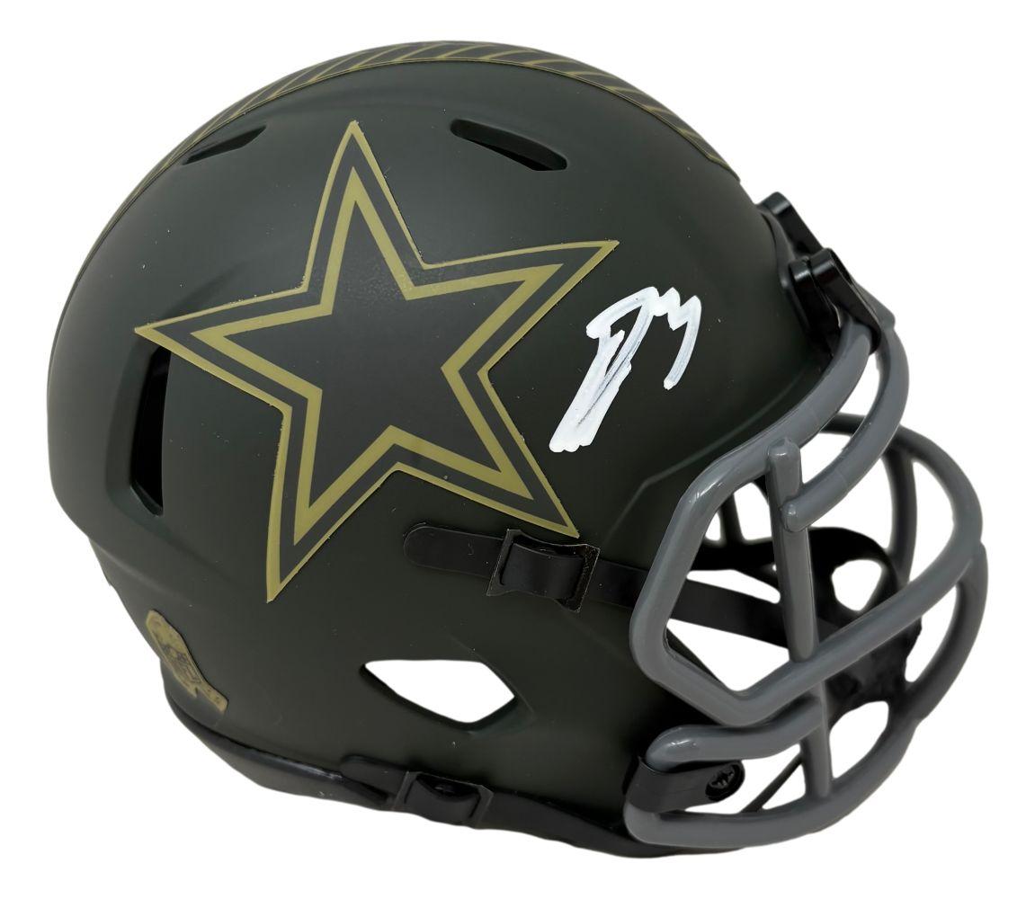 Riddell Dallas Cowboys salute to service alternate speed mini helmet has been hand-signed by George Pickens.