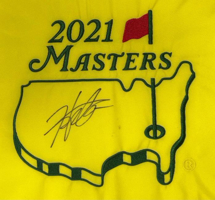 Custom frame measures 22” x 27” in size and features a pin flag that has been hand-signed by Hideki Matsuyama.