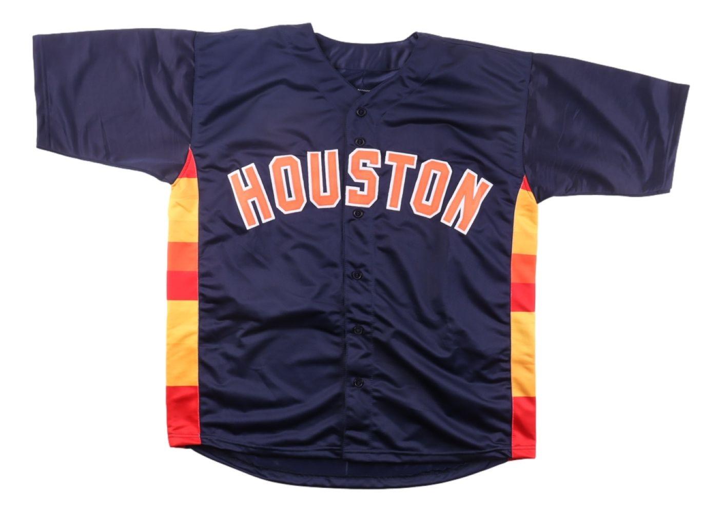 Custom jersey with everything sewn on, size XL. Hand-signed and inscribed by Jose Altuve.