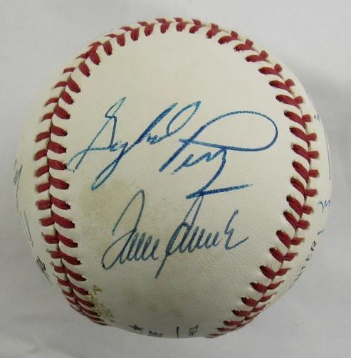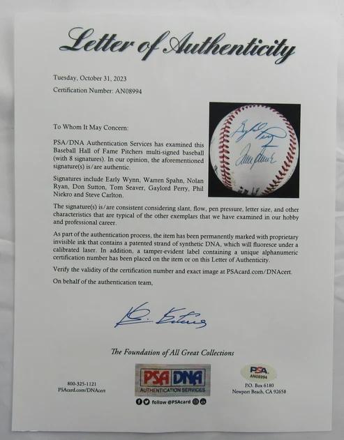 Rawlings Official National League baseball has been hand-signed by (8) 300 Win Club members including Tom Seaver, Nolan Ryan, Gaylord Perry, Phil Niekro, Don Sutton, Warren Spahn, Early Wynn, and Steve Carlton.